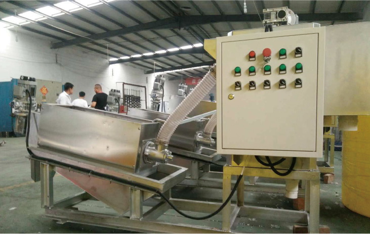 疊螺式污泥脫水機屬于螺旋脫水機,可以減少沉淀池及污泥濃縮池,節(jié)約污水站建設成本。疊螺式污泥脫水機巧妙運用多重環(huán)片自動清洗過濾技術代替了傳統(tǒng)濾篩過濾,自身清洗過濾技術確保脫水機連續(xù)穩(wěn)定的泥水分離效果,通過螺桿直徑和螺距變化產(chǎn)生的強大擠壓力,以及游動環(huán)與固定環(huán)之間的微小縫隙,實現(xiàn)對污泥進行擠壓脫水,是一種新型的固液分離設備。